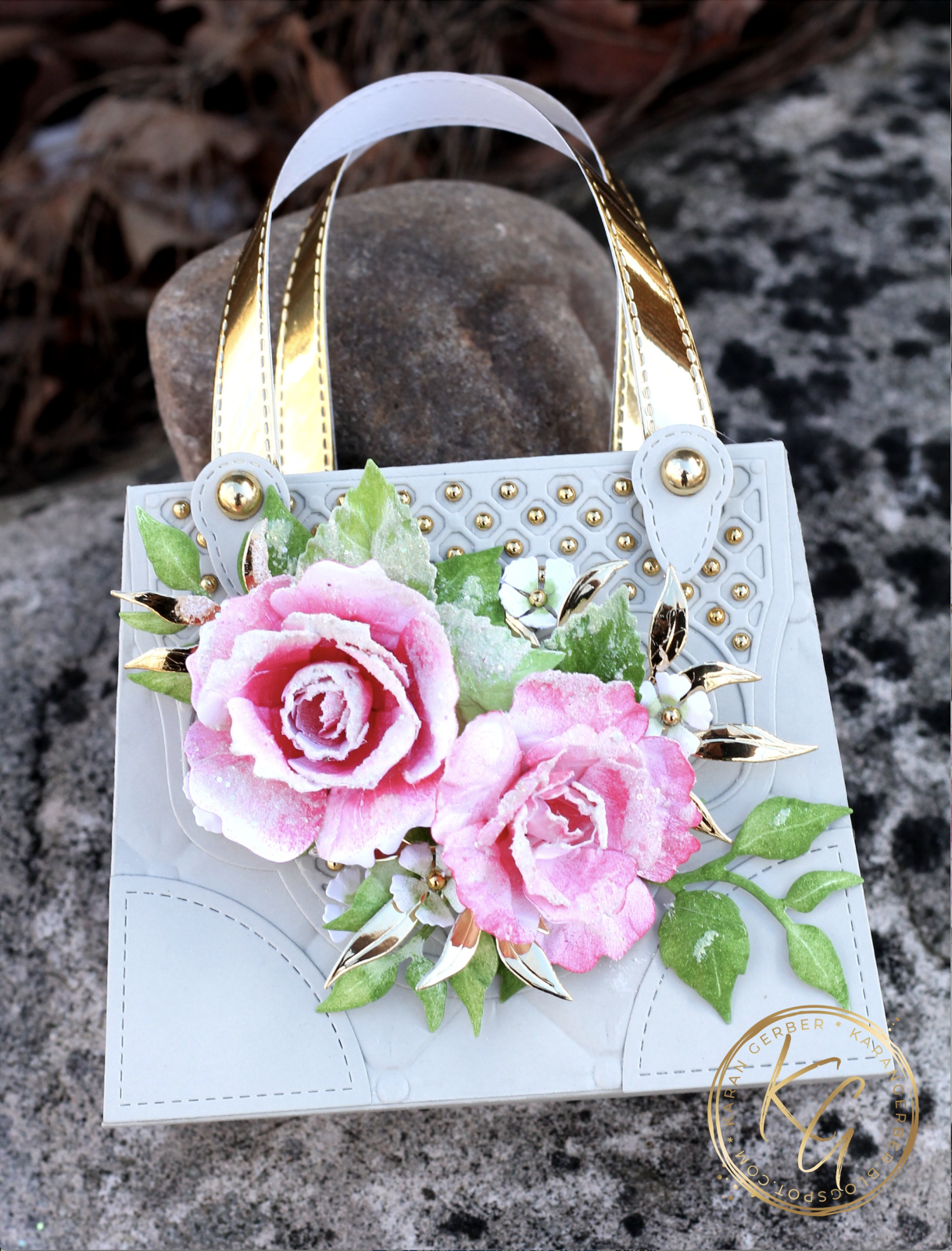 Karan will share her favorite tips and techniques with you in a private facebook group with pre recorded videos which will be available for one year. She will show you how to create the rose and include shaping and coloring techniques; how to create beautiful buds to use for added detail. How to assemble the Fancy Purse .