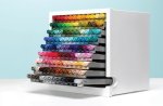 Store and organize Tombow markers with the new Marker Desktop Organizer. Holds up to 108 markers in 9 pull-out trays, each with 12 slots. Sleek, space saving design easily fits on your desk or workspace. Horizontal storage ensures even ink flow for double-ended markers. Fits Tombow Dual Brush Pens and ABT PRO Alcohol-Based Markers. Includes pre-printed color labels to organize Dual Brush Pens and ABT PROs, so you can easily find the color you're looking for. Blank labels available for download at TombowUSA.com. This package contains one marker desktop organizer. Dimensions 7.92x7.83x8.85 inches. Imported.